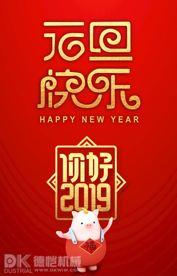 一年伊始元旦臨,舉國歡慶家團圓。吉星高照滿堂彩,禮炮聲聲祝福來。合家老小齊歡聚,美味佳肴端上來。舉杯共醉笑開懷,共祝祖國繁榮幸福來。德愷機械全體員工祝福大家2019元旦快樂!